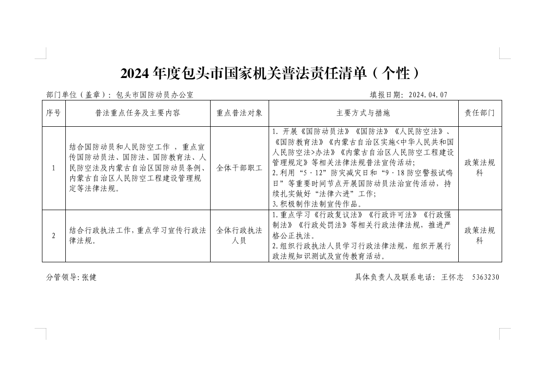 2024年度包头市国家机关普法责任清单(个性)