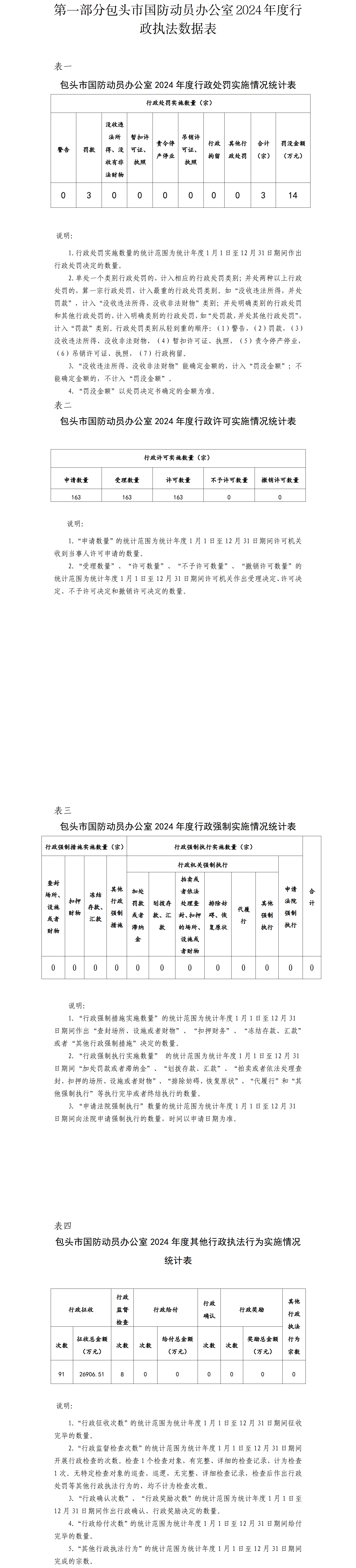 第一部分 包头市国防动员办公室2024年度行政执法数据表