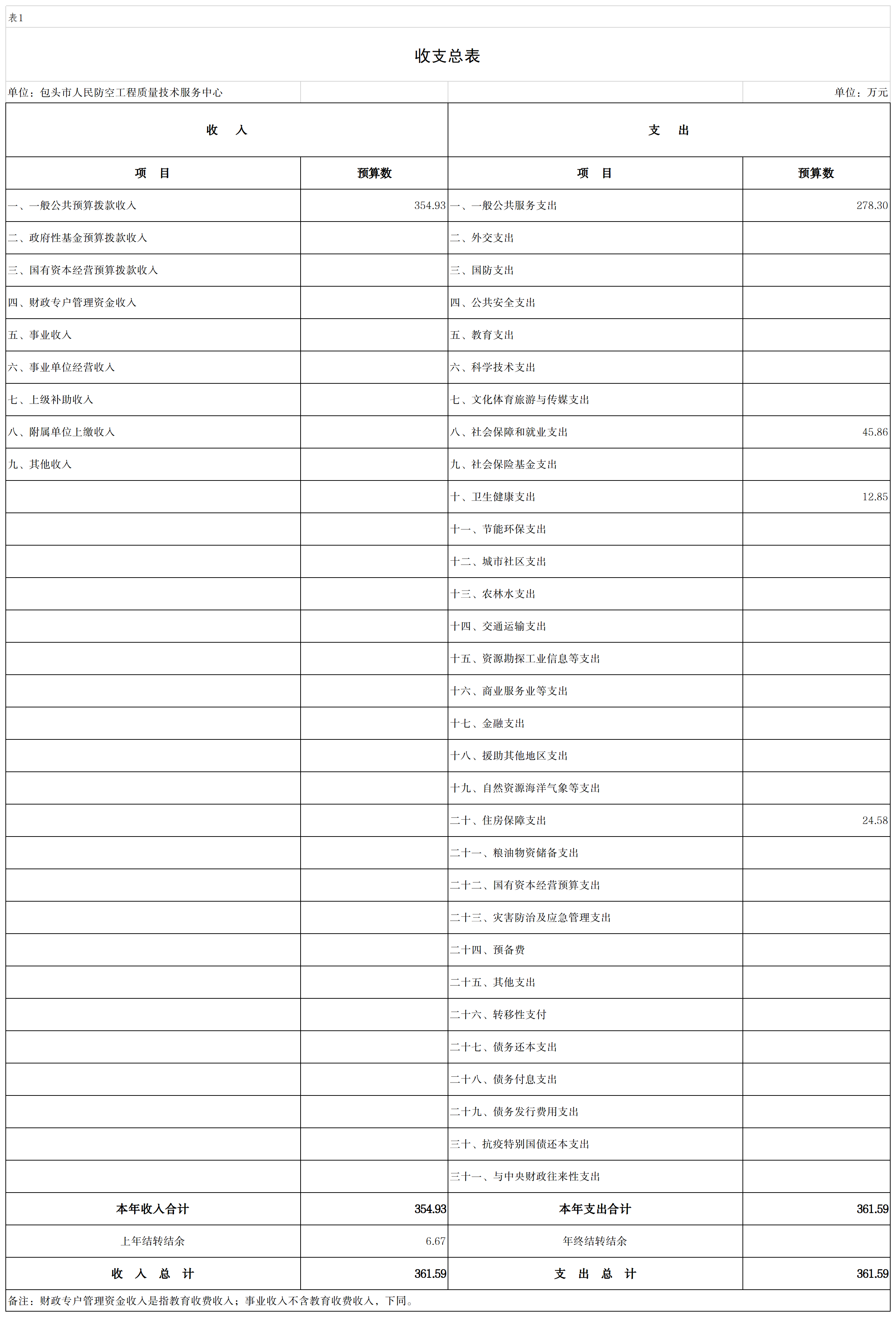 一、收支总表