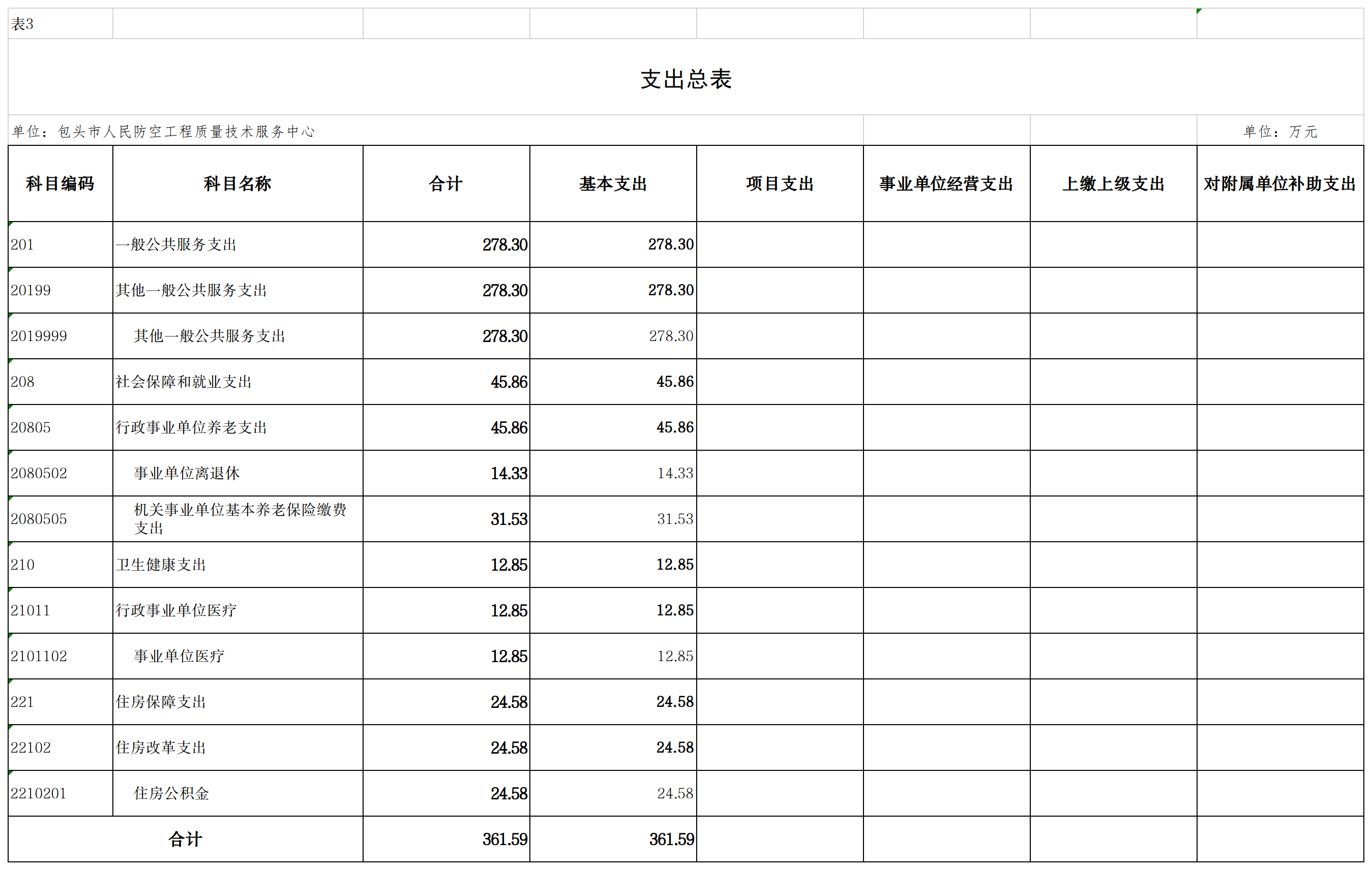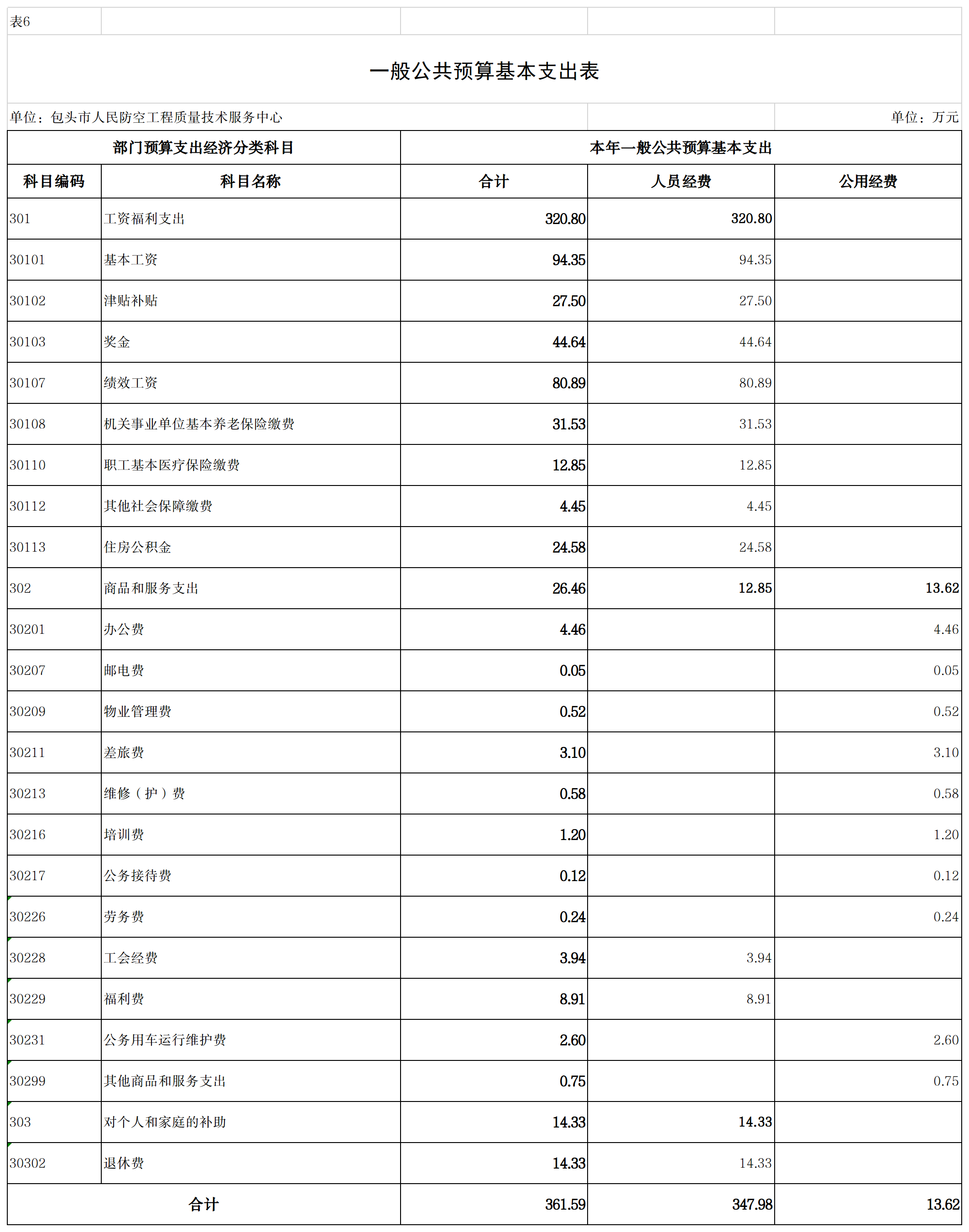 包头市人民防空工程质量技术服务中心单位2024年度一般公共预算财政拨款基本支出预算361.59万元,其中: