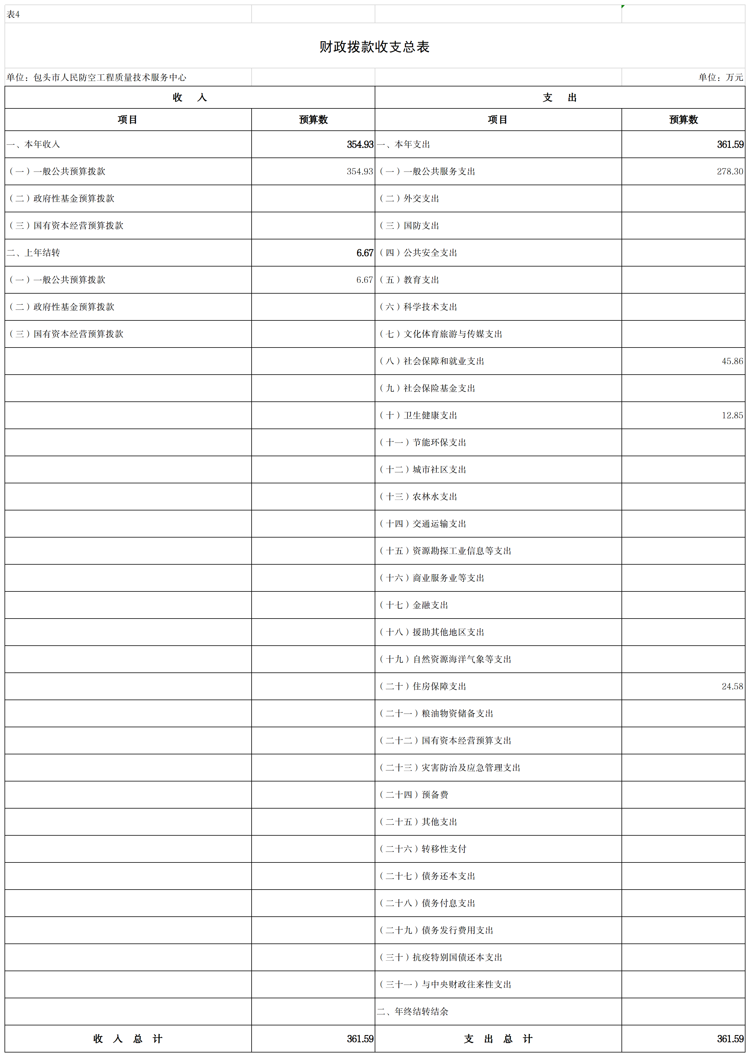 四、财政拨款收支总表