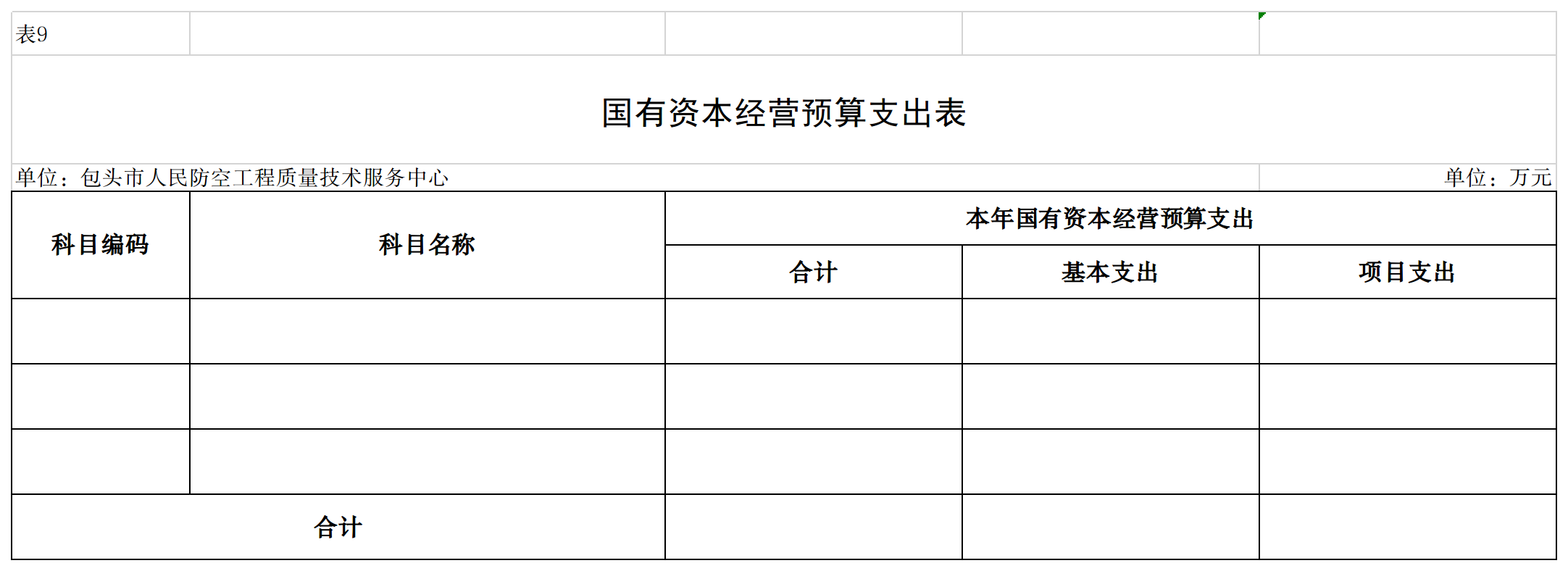 九、国有资本经营预算支出表