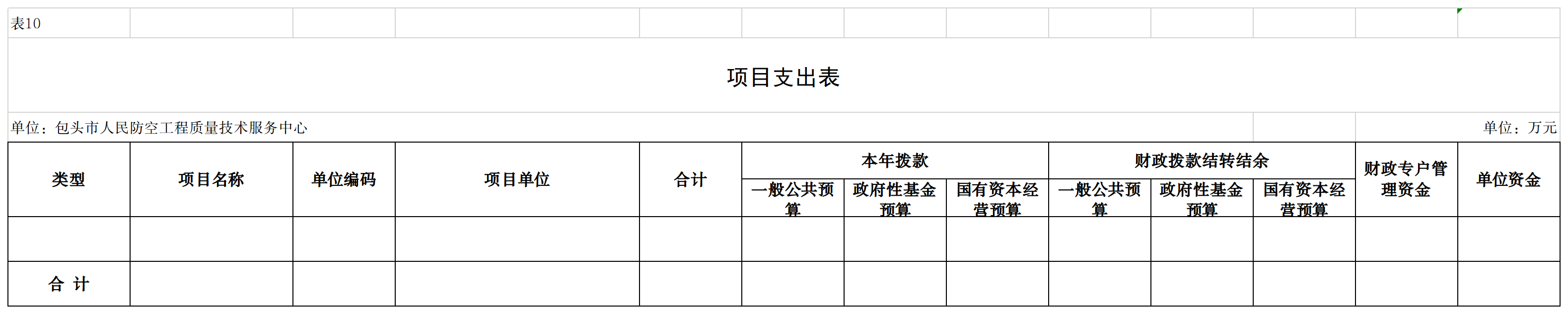 十、项目支出表