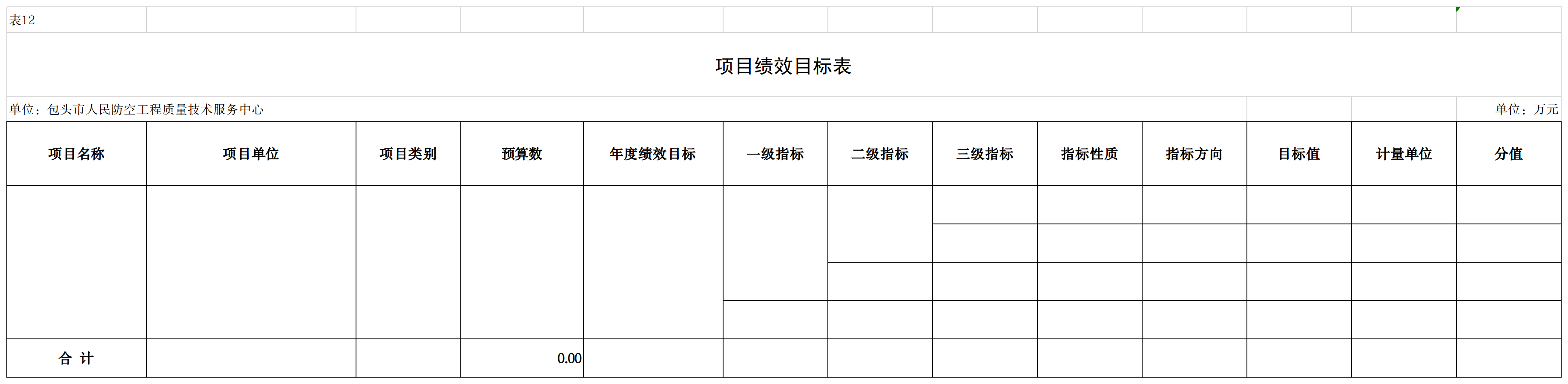 十一、项目绩效目标表