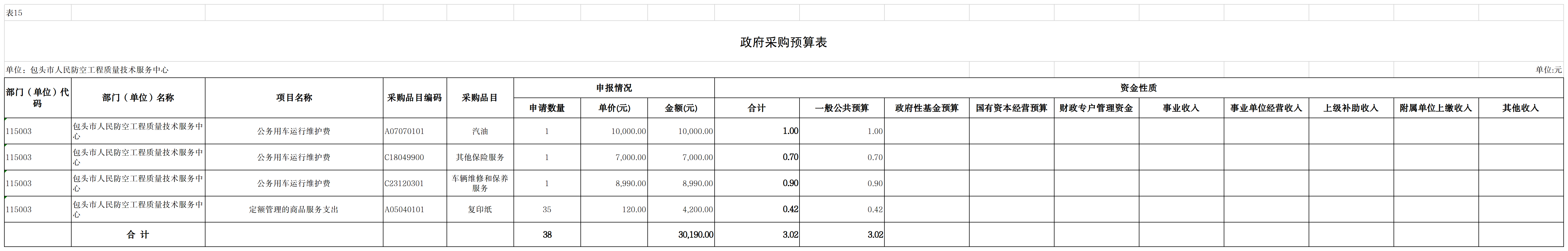 十二、政府采购预算表