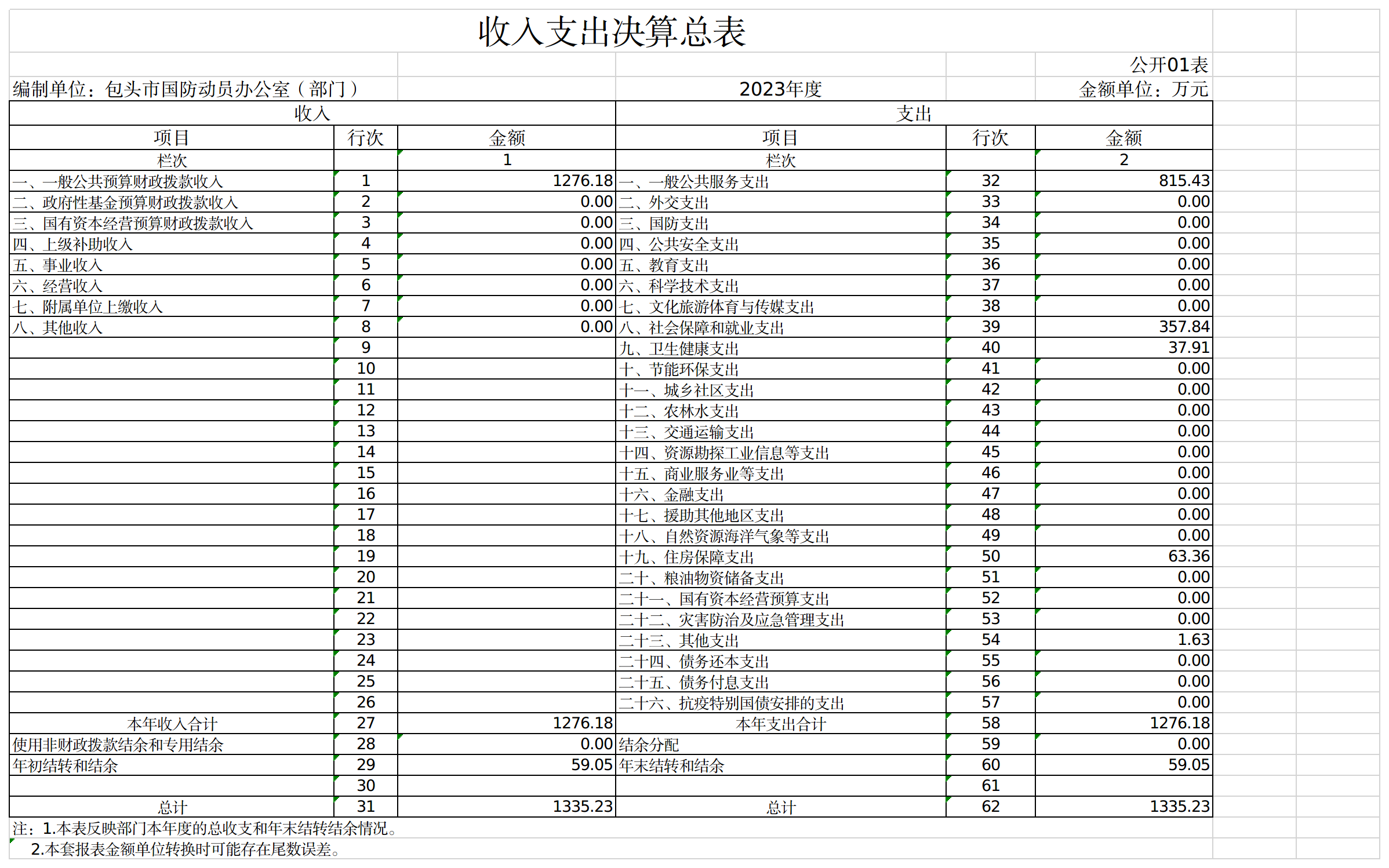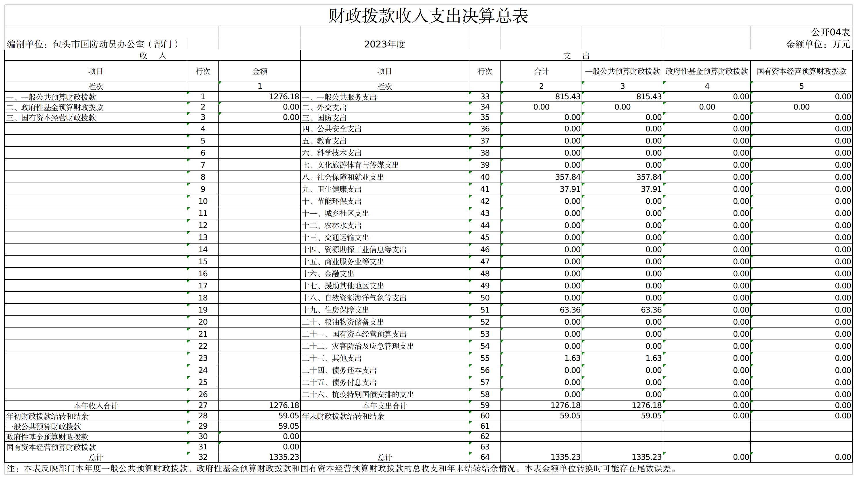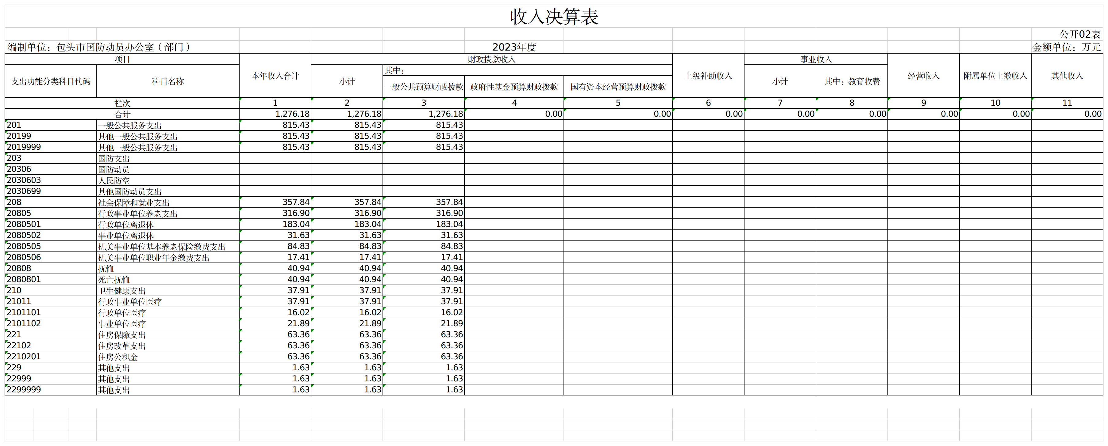 包头市国防动员办公室部门2023年度本年收入决算合计1276.18万元,其中: