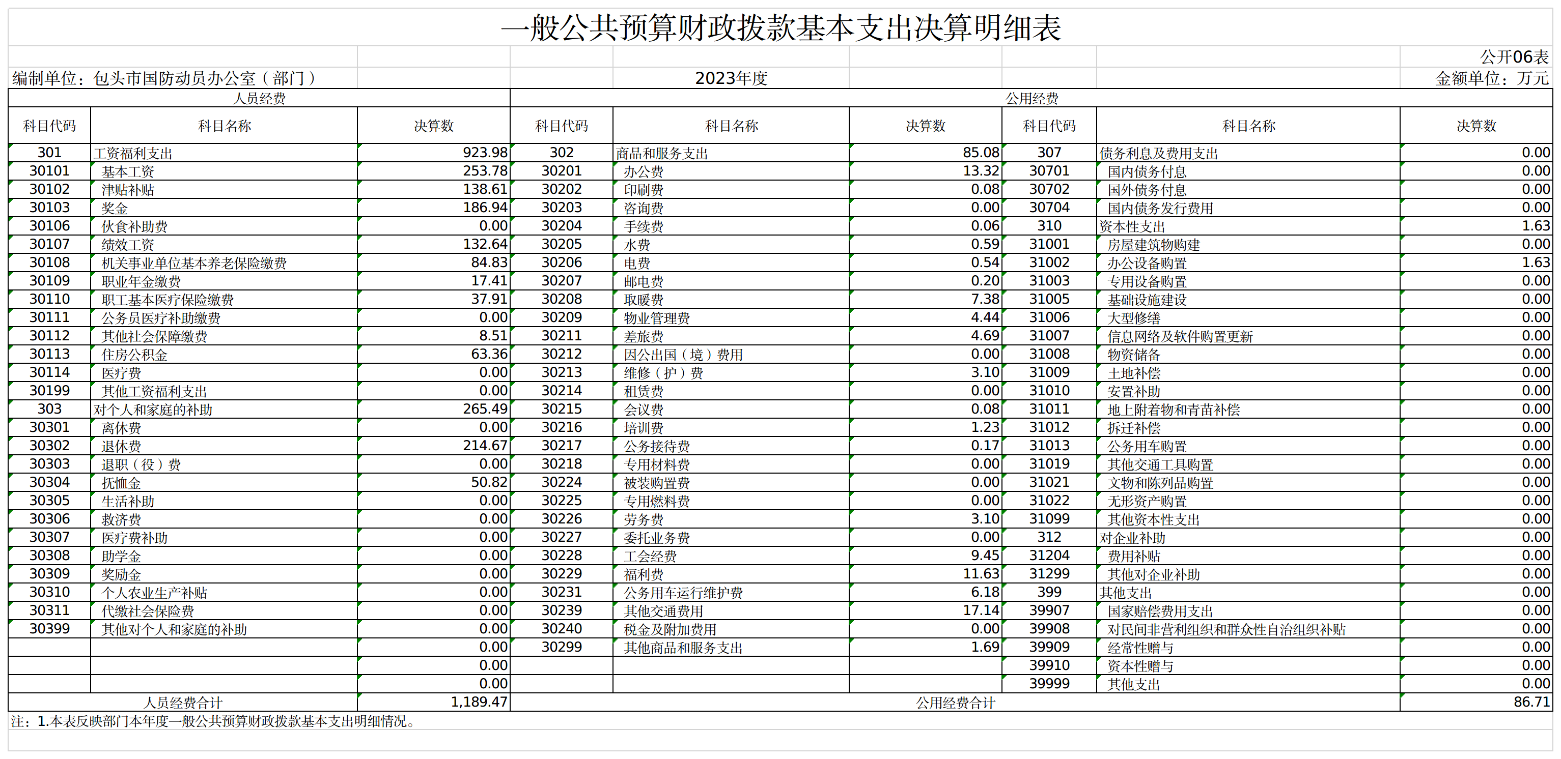 包头市国防动员办公室部门2023年度一般公共预算财政拨款基本支出决算1276.18万元,其中: