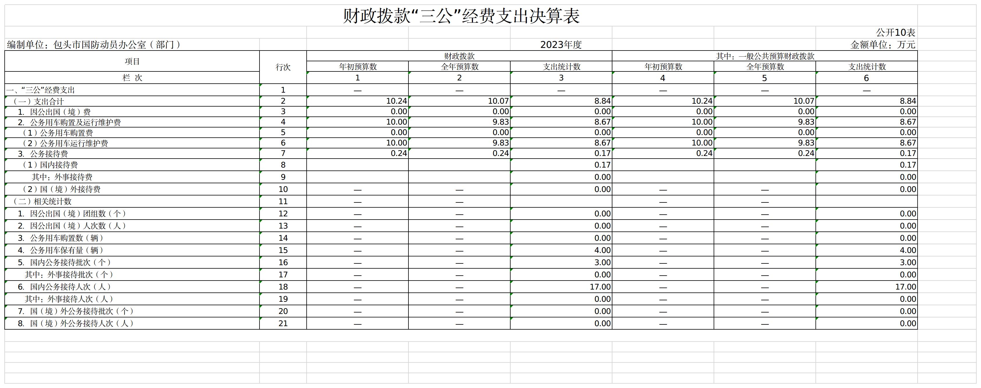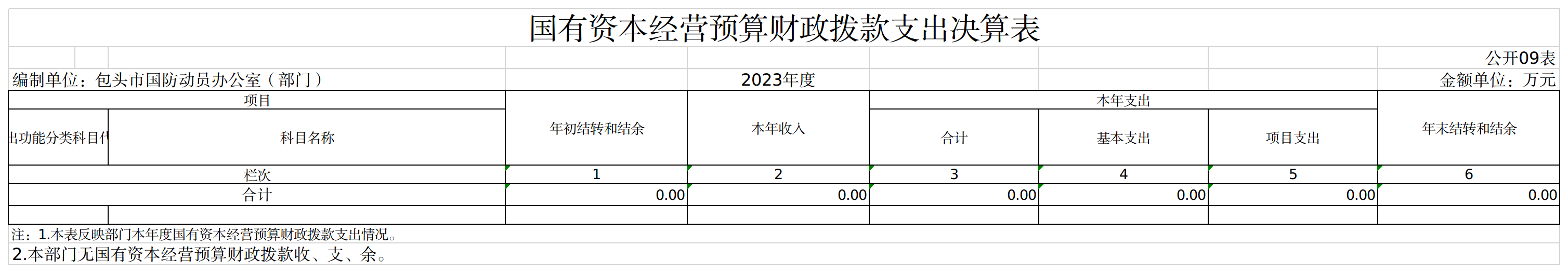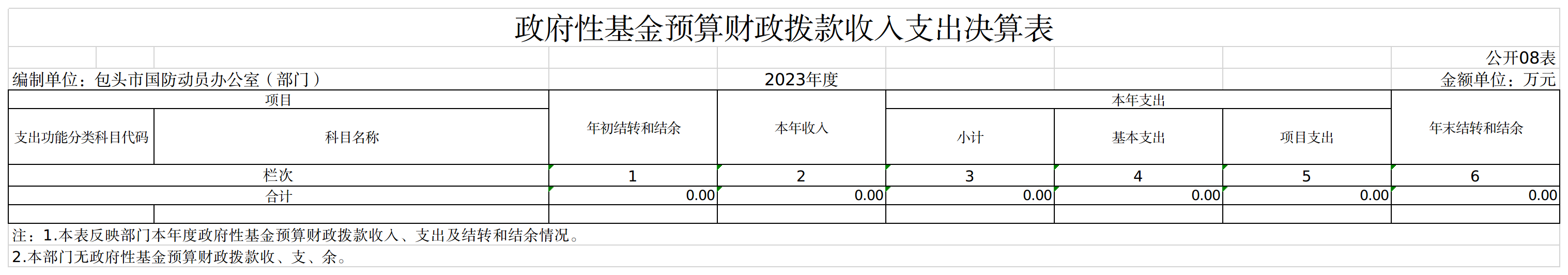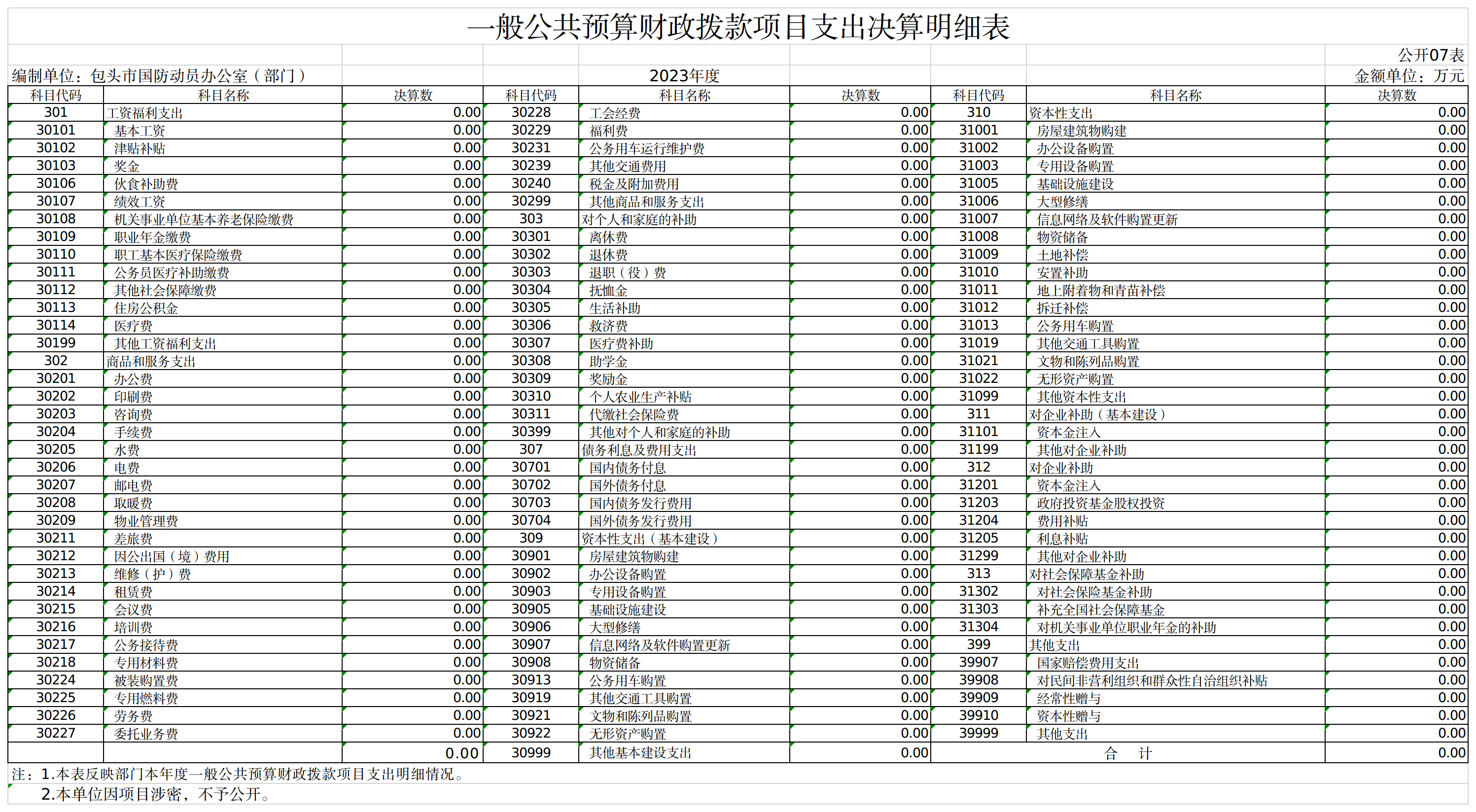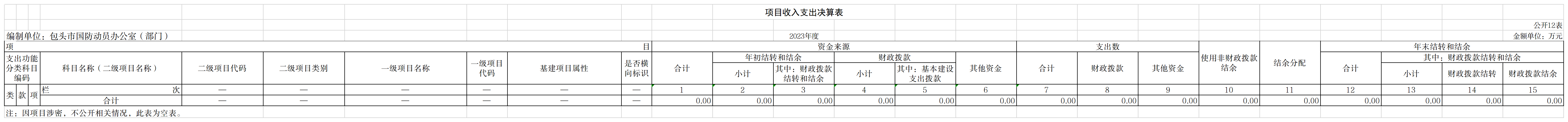 包头市国防动员办公室部门2023年度一般公共预算财政拨款项目支出决算0.00万元。我部门因项目涉密,不公开相关情况。