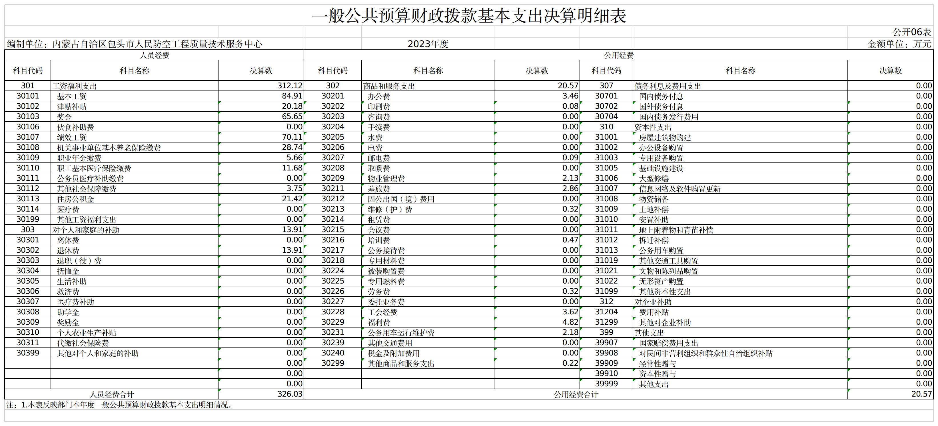 2023年度包头市人民防空工程质量技术服务中心决算报告