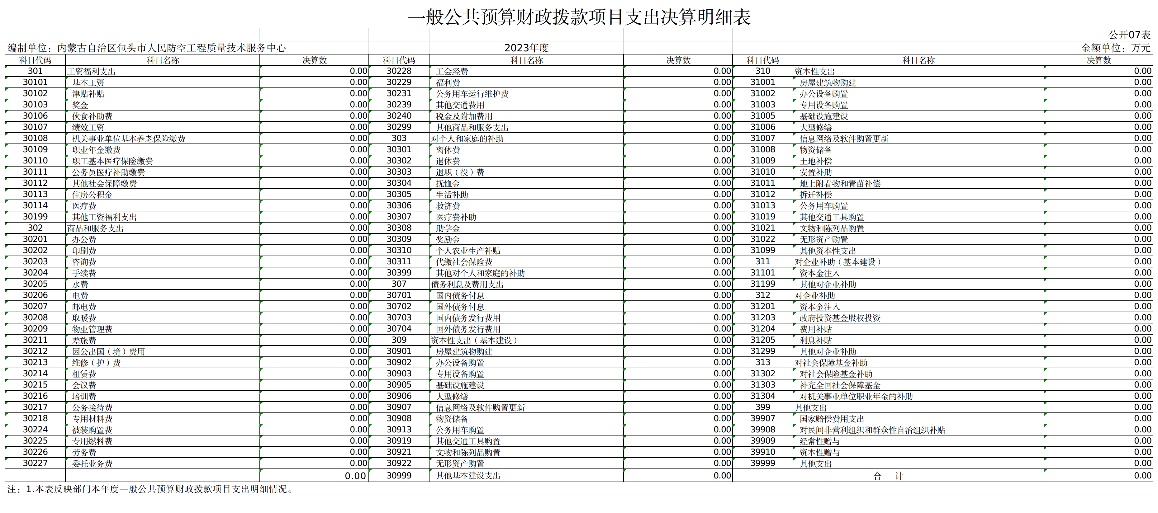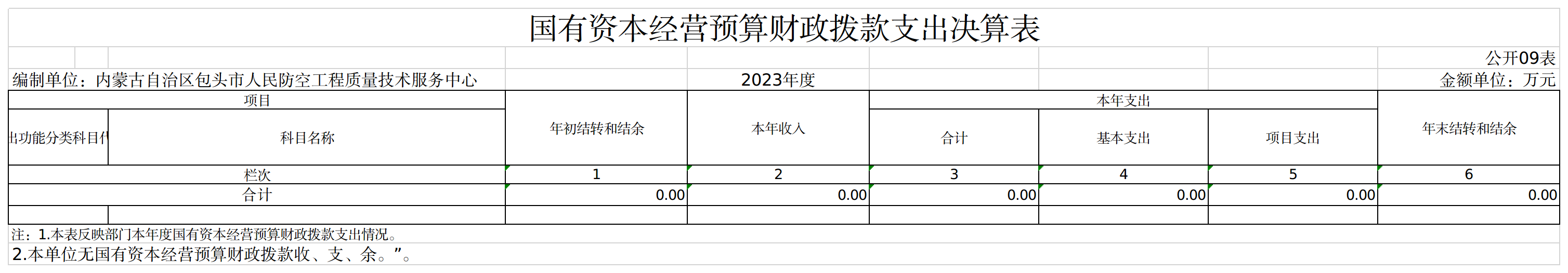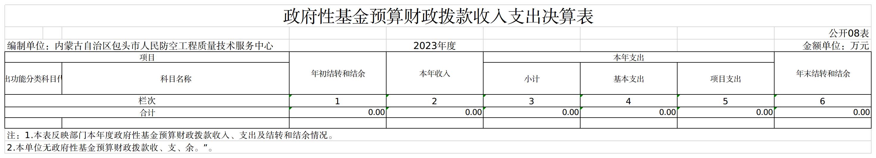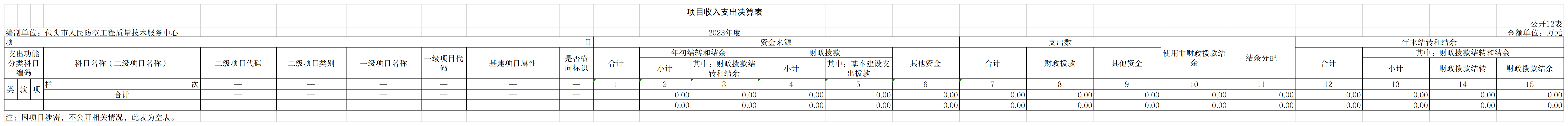 包头市人民防空工程质量技术服务中心2023年度一般公共预算财政拨款项目支出决算 0.00万元。