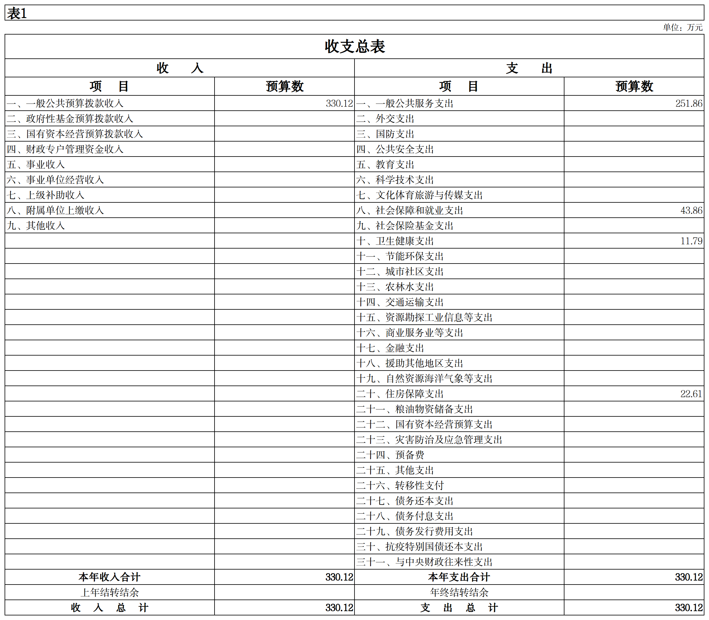 1.本年收入合计330.12万元。