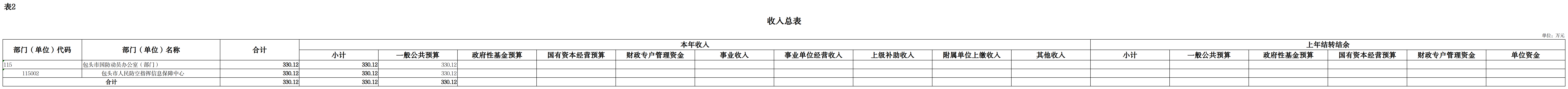 包头市人民防空指挥信息保障中心2025年收入预算合计330.12万元,包括本年收入330.12万元,上年结转结余0万元。其中:
