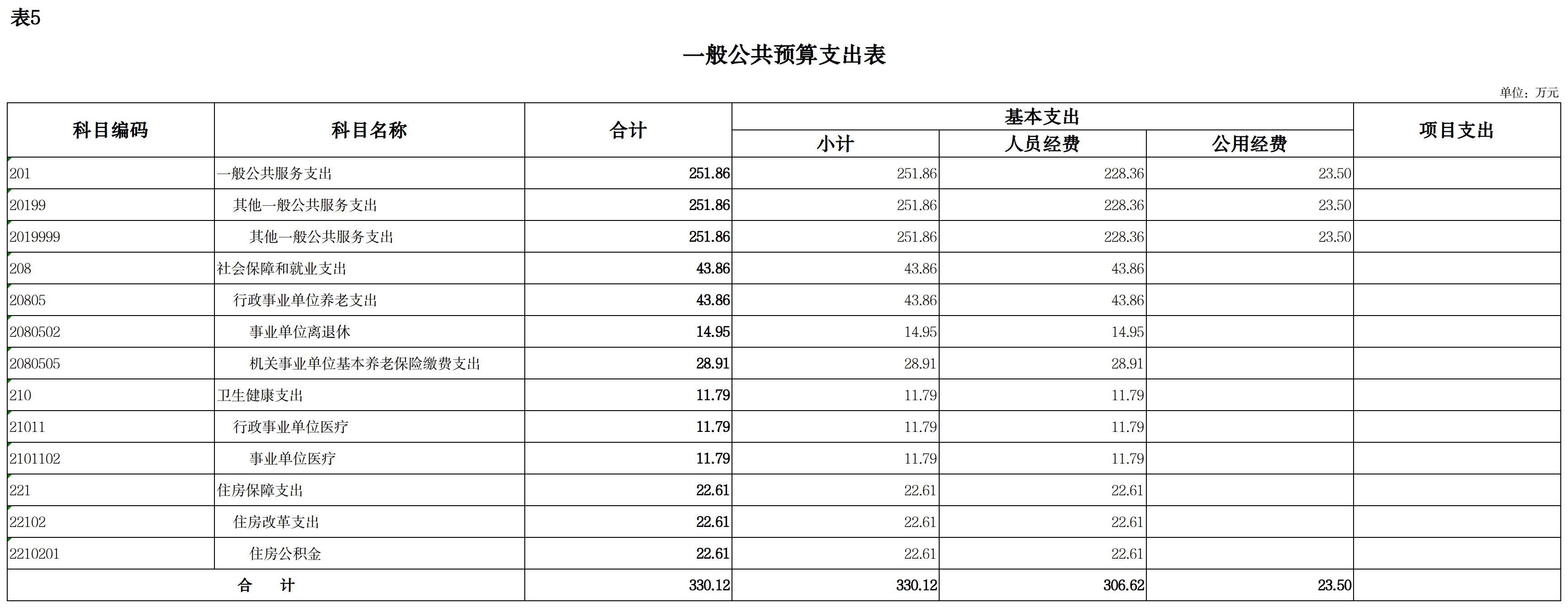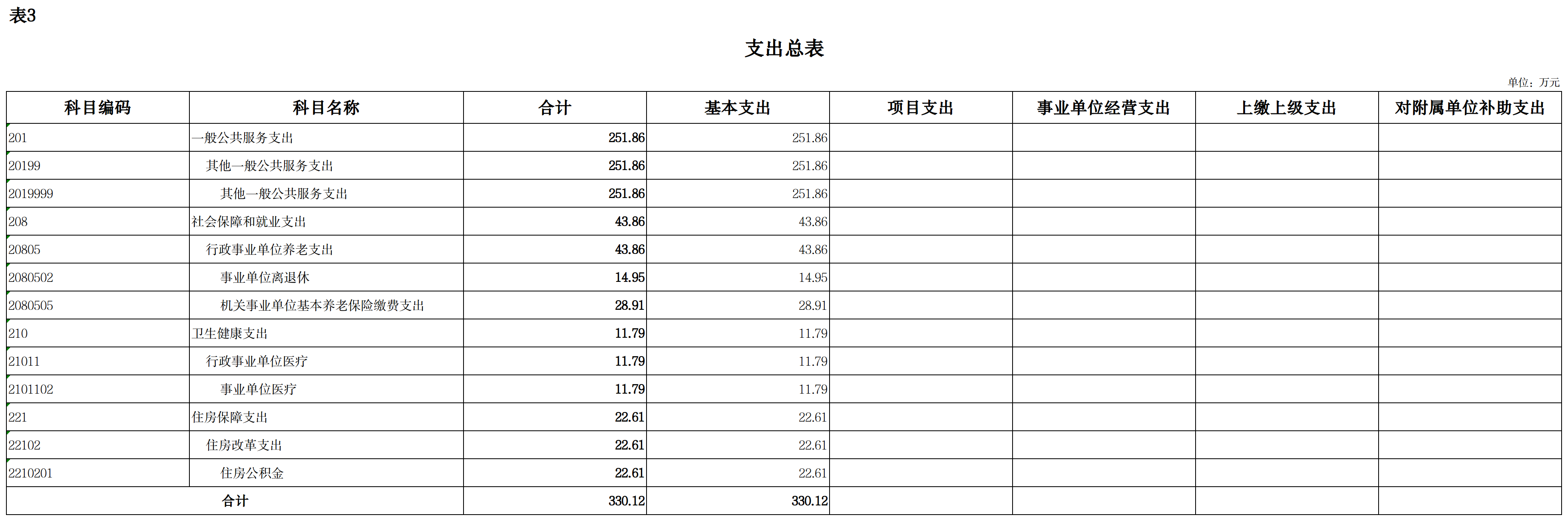 基本支出330.12万元,占100%;