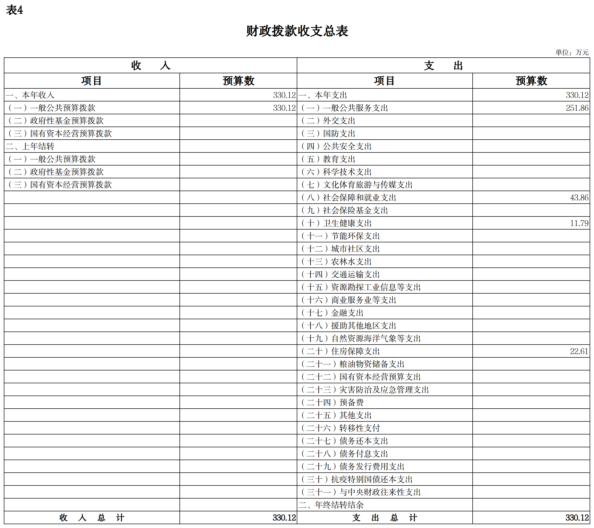 四、财政拨款收支总表