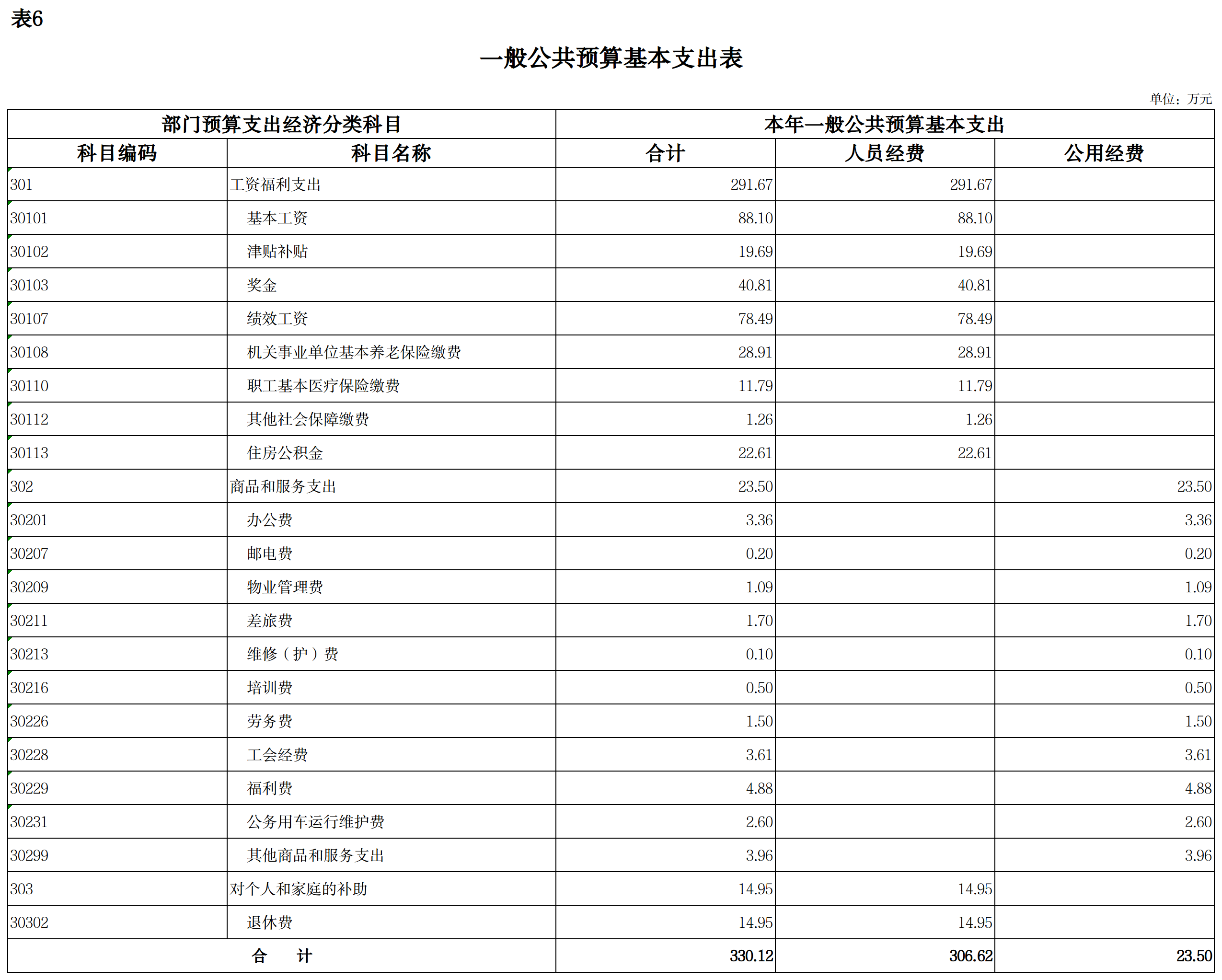 六、一般公共预算基本支出表