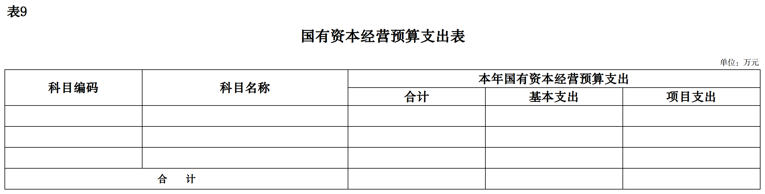 九、国有资本经营预算支出表