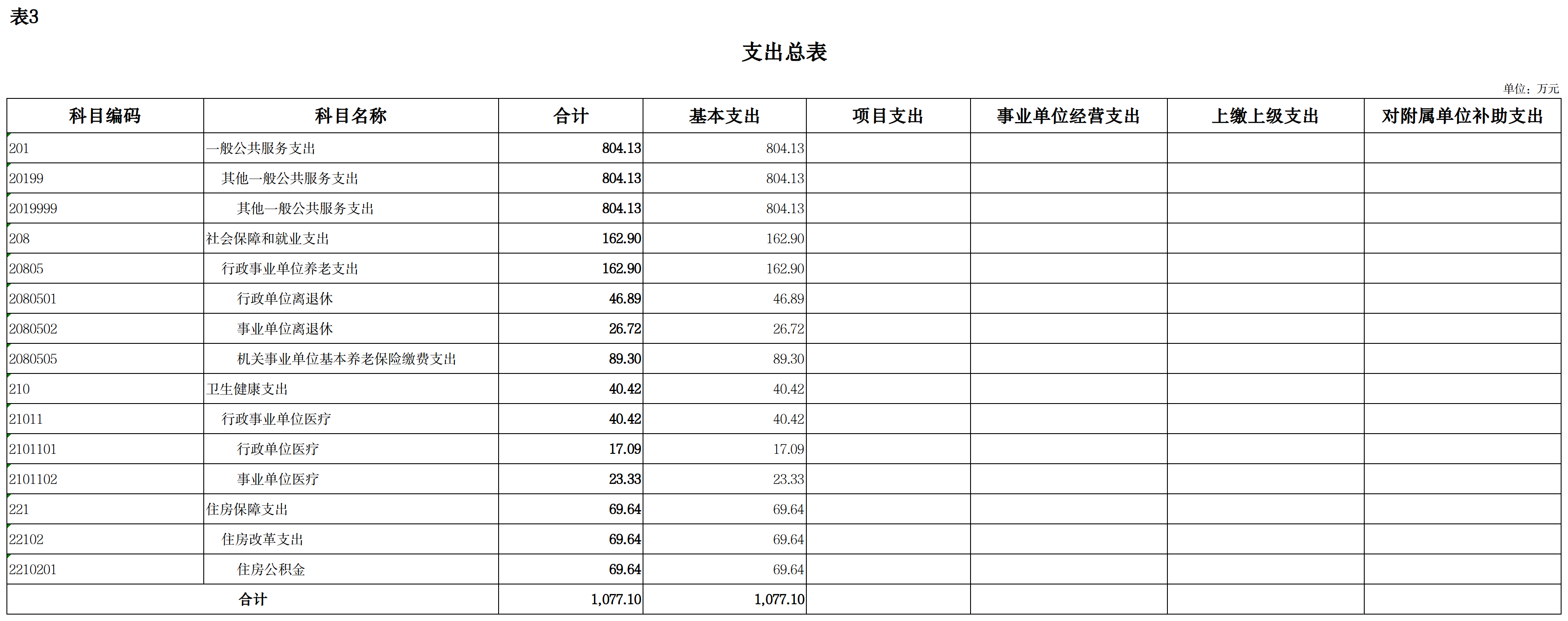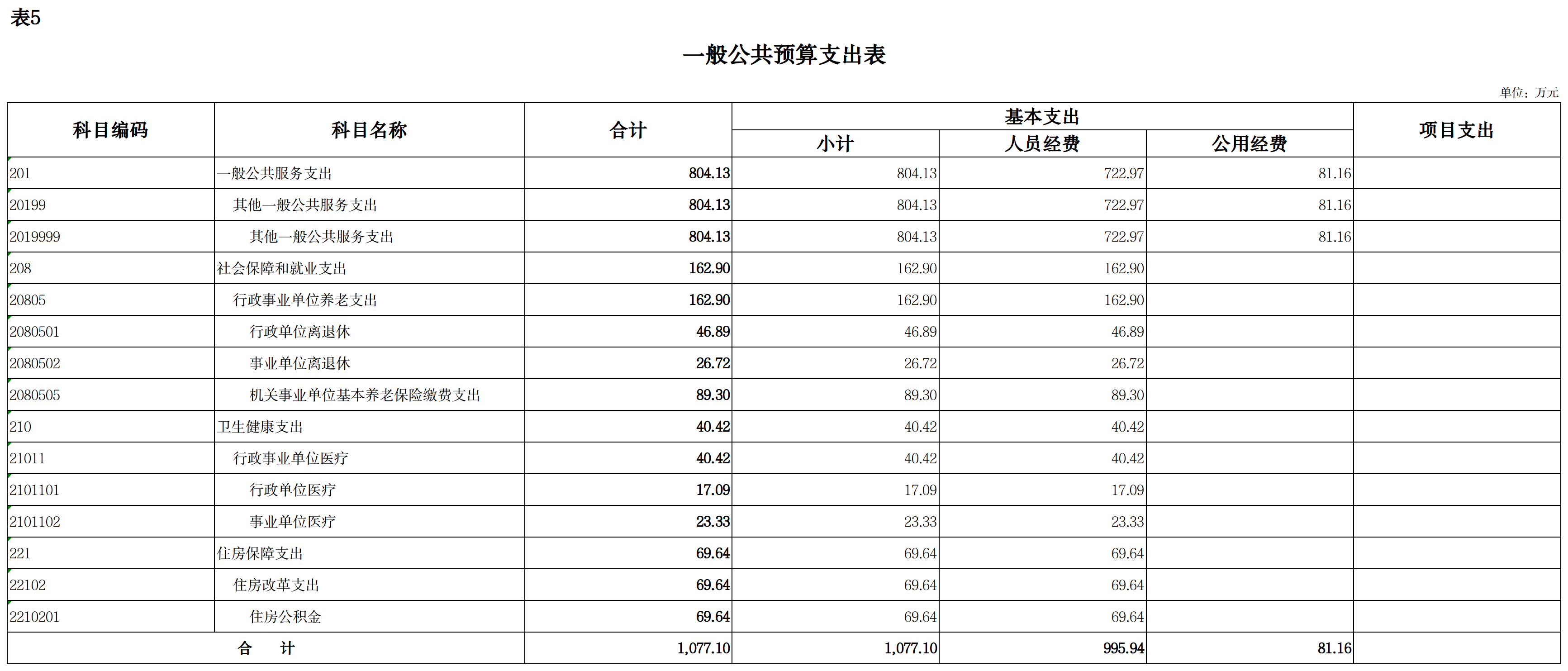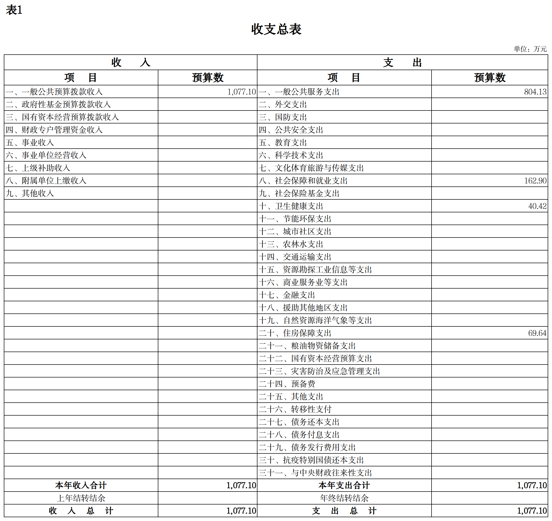 (1)一般公共预算拨款收入1,077.10万元,与上年相比减少26.87万元,减少2.43%。主要原因:一是人员减少;二是减少发放艰苦边远地区补贴。