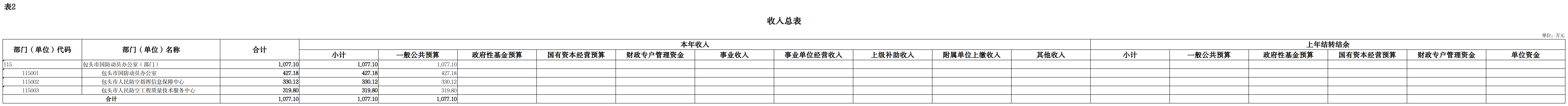 包头市国防动员办公室2025年收入预算合计1,077.10万元,包括本年收入1,077.10万元,上年结转结余0.00万元。其中: